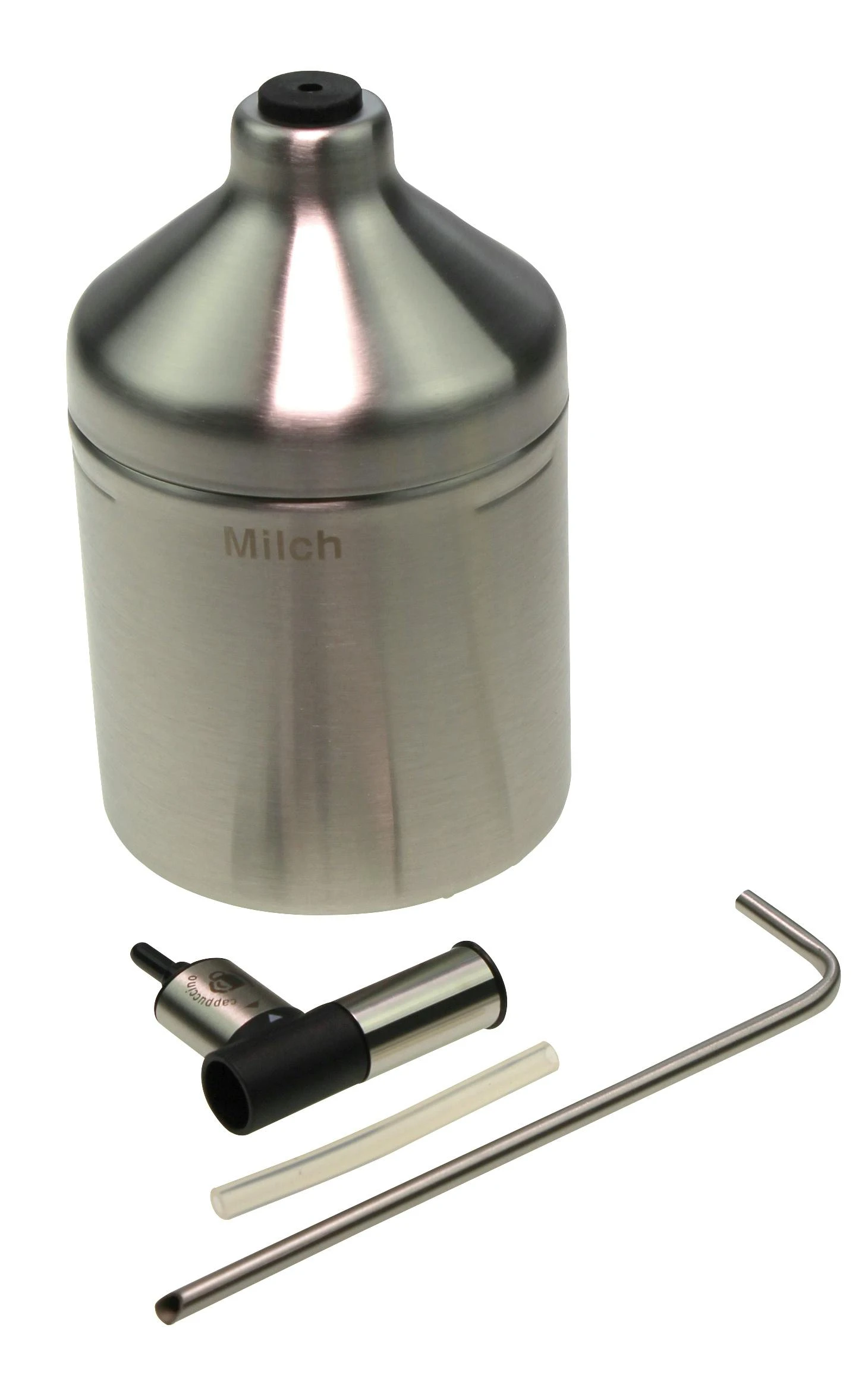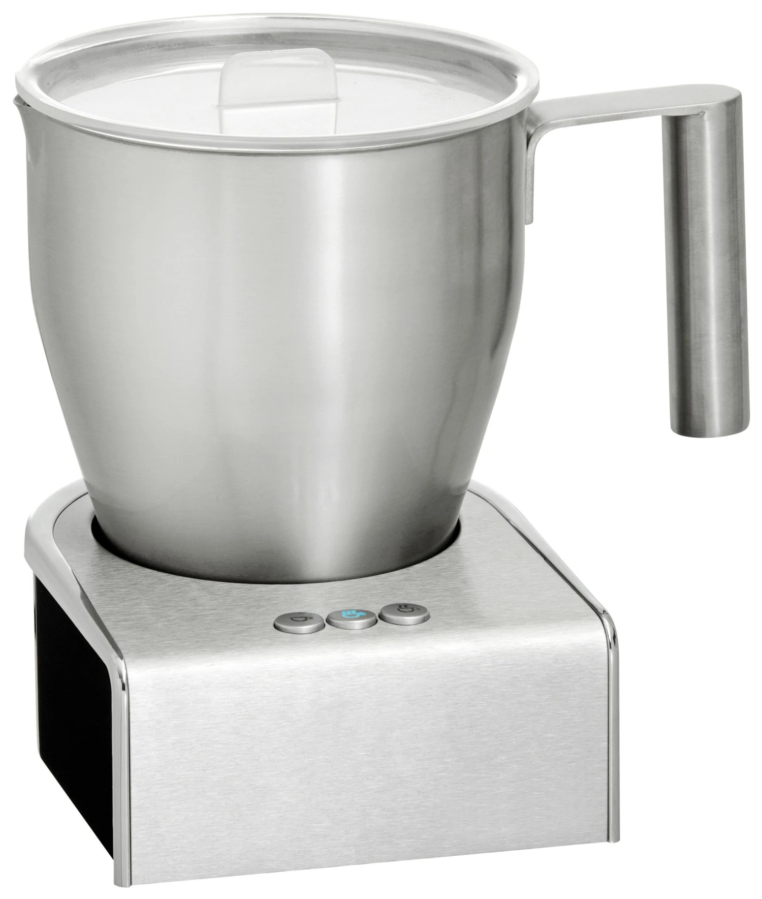 in 80-90 Sekunden heiße, cremige oder fest aufgeschäumte Milch 3 Temperaturstufen (kalt, 65°C, 70°C) inkl. 1 Mixscheibe für Mikromilchschaum und 2 Scheiben für festen Schaum Mixer werden magnetisch ohne Achse durch den Kannenboden angetrieben (leichte Reinigung und absolute Dichte) Induktion mit Kontaktschalter für Kanne und automatischer Abschaltung (verhindert Anbrennen der Milch) für 150-400 ml Milch kein Vorwärmen der Milch notwendig Edelstahl mit Kunststoffdeckel Becher, Deckel und Mixscheiben spülmaschinengeeignet