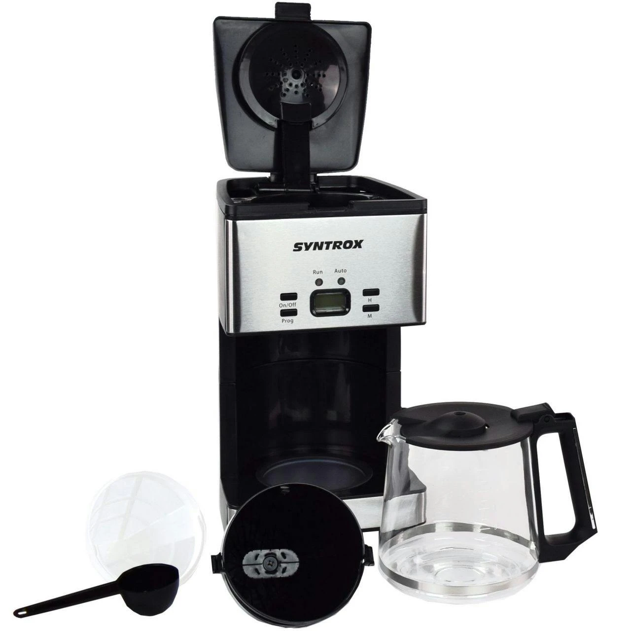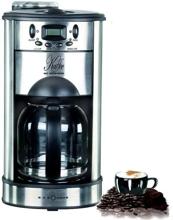 Kaffeemaschine mit Mahlwerk im Edelstahl-Design – schickes Equipment für die Küche Suchen Sie eine hochwertige Kaffeemaschine mit Mahlwerk , die besonders praktisch ist und zudem auch noch schick aussieht? Wir haben hier für Sie eine Kaffeemaschine mit Mahlwerk, die im edlen Edelstahl-Design gehalten ist und in jeder Küche eine gute Figur abgibt. Geeignet ist die elegante Kaffeemaschine sowohl für Pulver als auch für ganze Kaffeebohnen . Dank dieser Möglichkeit kann jeder Mensch zu genau dem Kaffee gelangen, den er sich wünscht. Kaffee kochen mit ganzen Bohnen, das ist allgemein sehr beliebt und sorgt für einen köstlich schmeckenden Kaffee. Versehen ist die Kaffeemaschine mit einem 3-Stufen Mahlwerk mit Reinigungssystem . Kaufen Sie sich die Kaffeemaschine, können Sie sich sozusagen über eine optimale Ausstattung für Kaffeeliebhaber freuen. Bestückt ist die Kaffeemaschine auch noch mit einem Permanentfilter , sodass keine Filtertüten mehr nötig sind, sodass Sie sich Kosten und Wege sparen. Möchten Sie sich die Kaffeemaschine kaufen, erhalten Sie ein Modell, welches bis zu 12 Tassen Kaffee erzeugen kann. Worauf warten Sie nun noch? Kaufen Sie sich nun die moderne Kaffeemaschine im Edelstahl-Design zu fairen Konditionen. Praktische Kaffeemaschine mit vielen Features Natürlich ist die Kaffeemaschine mit Mahlwerk nicht nur aus den genannten Gründen empfehlenswert. Auch die Features, die die Kaffeemaschine mit sich bringt, können sich sehen lassen. Es gibt ein Digital-Display mit Uhrzeit. Auch eine Timer-Funktion bringt die Kaffeemaschine mit sich, sodass Sie ganz nach Belieben einstellen und Kaffee kochen lassen können. Zusätzlich gibt es eine automatische Aufbrühfunktion und natürlich auch eine Wasserstandanzeige , sodass Sie immer genau wissen, wie viel Wasser in der Kaffeemaschine ist. Auch eine Warmhalteplatte gehört zu der Kaffeemaschine. Sie müssen also nichts überstürzen, sondern können auch ein Weilchen warten, bis Sie Ihren heißgeliebten Kaffee trinken. Er wird eine ganze Zeit warmgehalten, sodass Sie sich über keinen kalten Kaffee ärgern müssen. Bespickt ist die Kaffeemaschine zusätzlich auch noch mit einem Tropfschutz , sodass es keine Flecken gibt. Die Kaffeemaschine aus dem Syntrox.de Online Shop ist auf jeden Fall eine gute Option. Aufgrund des schicken Edelstahl-Designs ist die Kaffeemaschine ein richtiger Hingucker in der Küche. Da passt einfach alles optimal zusammen. Schnell zu Kaffee in jeder Situation – ganz einfach mit der Kaffeemaschine Sie müssen jede Menge Kaffee kochen, weil vielleicht ein Geburtstag oder eine andere Feierlichkeit ansteht? Dann haben Sie die richtige Kaffeemaschine zur Hand, wenn Sie sich dieses Modell hier kaufen. In Windeseile gelangen Sie an frischen Kaffee für die Gäste. Sie könnten auch schon 12 Tassen vorkochen und den Kaffee in eine Thermoskanne umfüllen. Danach kochen Sie einfach den nächsten Schwung Kaffee, damit Sie stets für die Gäste das Getränk zur Verfügung haben. Ob Kaffee aus frischen Bohnen oder aus Pulver, das können Sie ganz in Ruhe entscheiden. Aber vielleicht können Sie auch noch anderes Equipment für Ihre Küche gebrauchen. In unserem Online Shop finden Sie eine breite Vielfalt an Küchengeräten vor, die besonders praktisch sind. Schauen Sie sich einfach in dem Online Shop um und entdecken verschiedene Maker wie Waffeleisen , Muffin Maker und Donut Maker . Gerade zum Kindergeburtstag bieten sich solche praktischen Geräte an. Im Nu werden viele Leckereien für die Gäste zubereitet. Passender Kaffee für diese Kaffeemaschine: Jacobs 345009 Milea Kaffee, JACOBS 373842 Sinnfonie Supremo Bohnen, JACOBS 373844 Sinnfonie Vulkan Bohnen, JACOBS 373848 Sinnfonie Perlbohnen, JACOBS 376133 Sinnfonie Supremo Bohnen, JACOBS 376135 Sinnfonie Vulkan Bohnen, JACOBS 376138 Sinnfonie Perlbohnen, Jura 62082 Impressa-Kaffee/ Schweizer Mischung 250g, Lavazza 917592 Kaffee Set, Minges Caffe Cremano, Minges Cremé Caffe Schweizer Schümli II, Gaggia buonissima, Gaggia Danesi ORO, JACOBS Caffè