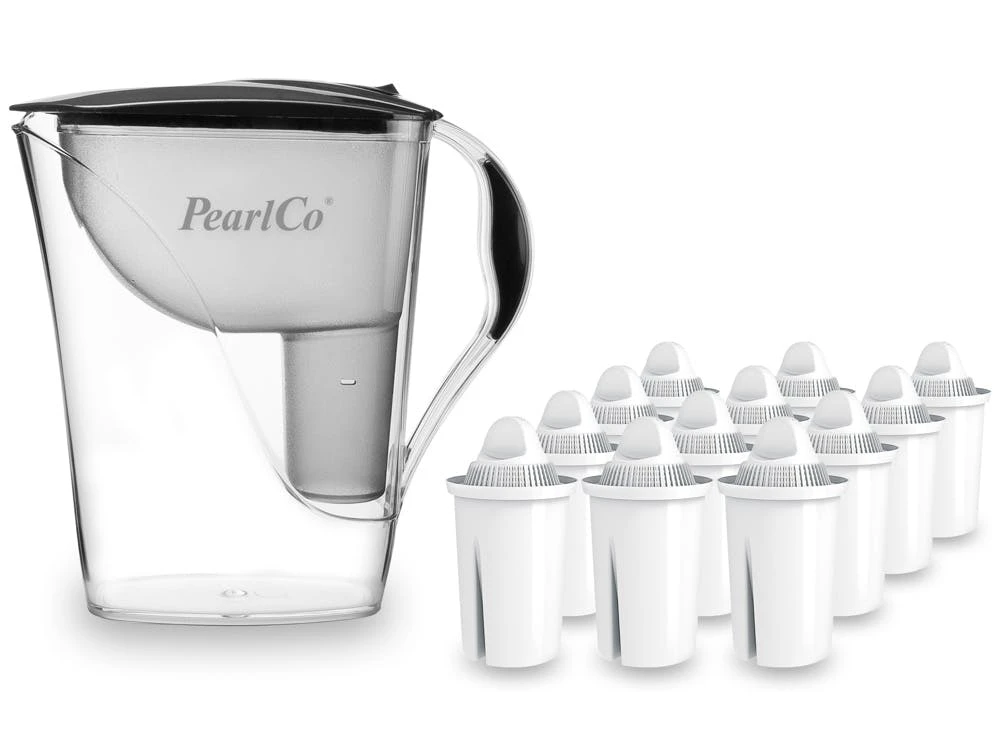 Ökologisch Vermeidung von Plastikmüll Sparsam Verzichten Sie auf Plastikflaschen Reiner Geschmack Speisen und Getränke entfalten ihr volles Aroma Der PearlCo Wasserfilter Fashion Der PearlCo Wasserfilter Fashion ist aus hochwertigem, stabilen Kunststoff gefertigt. Ein manuell einstellbarer Wechselanzeiger mit Datums- und Monatsangaben zeigt auf einen Blick, wann eine neue Filterkartusche benötigt wird. Besonders praktisch: Beim Einschieben des Wechselanzeigers wird auch die Einfüllöffnung automatisch verschlossen. Trotz seiner hohen Kapazität von 3,3 Litern gefiltertem Wasser passt der Wasserfilter Fashion in viele Kühlschranktüren. Sein ergonomisch geformter Griff sorgt für eine komfortable, einfache Handhabung. Die rutschfeste Bodenplatte garantiert einen sicheren und stabilen Stand. Universal Filterkartusche Classic PearlCo Universal Wasserfilter-Kartuschen optimieren ihr Leitungswasser mit hygienischer Filtertechnik. Der Kalkgehalt des Wassers wird deutlich reduziert, ebenso der Anteil an Schadstoffen wie Blei und anderen Schwermetallen. Gleiches gilt für geschmacklich störendes Chlor und viele weitere, im Trinkwasser unerwünschte Stoffe. Die Filterung erzeugt aromatisches, geschmackvolles Wasser, das für die Zubereitung von Speisen und Getränken oft viel besser geeignet ist als ungefiltertes Leitungswasser. Besonders groß ist der Unterschied bei Tee und Kaffee: Beide Getränke werden nicht nur sichtbar klarer, sondern schmecken auch deutlich besser!