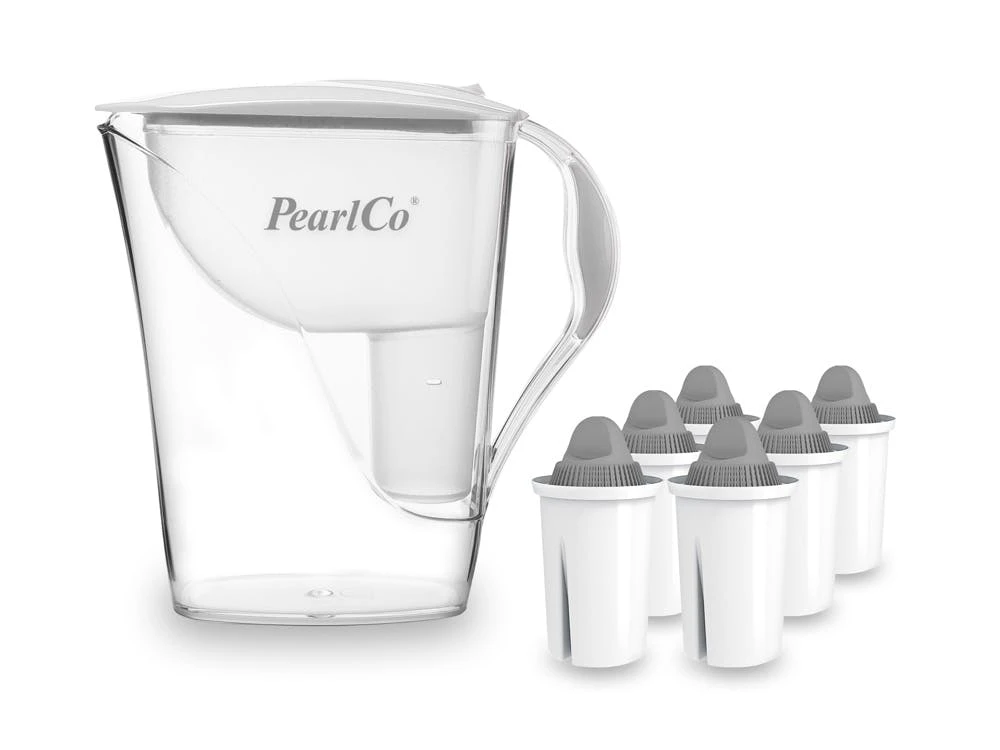 Ökologisch Vermeidung von Plastikmüll Sparsam Verzichten Sie auf Plastikflaschen Reiner Geschmack Speisen und Getränke entfalten ihr volles Aroma Der PearlCo Standard Wasserfilter Der PearlCo Wasserfilter Standard ist aus hochwertigem, stabilen Kunststoff gefertigt. Ein manuell einstellbarer Wechselanzeiger mit Datums- und Monatsangaben zeigt auf einen Blick, wann eine neue Filterkartusche benötigt wird. Besonders praktisch: Beim Einschieben des Wechselanzeigers wird auch die Einfüllöffnung automatisch verschlossen. Dank seiner kompakten Bauform passt der Wasserfilter Standard in die allermeisten Kühlschranktüren. Der ergonomisch geformte Griff sorgt für eine komfortable, einfache Handhabung. Protect+ Filterkartusche Classic PearlCo Protect+ Filterkartuschen enthalten einen höheren Anteil des für die Kalkreduzierung zuständigen Ionentauschers. Auf diese Weise kann auch das Trinkwasser aus Gebieten sehr hoher Wasserhärte problemlos für feinste Teesorten, hochwertigen Kaffee und viele andere, besonders geschmackssensitive Getränke verwendet werden. Die hohe Entkalkungs-Leistung der Protect+ Filterkartusche sorgt für einen zuverlässigen Schutz gegen das bei hoher Wasserhärte typische, schnelle Verkalken von Kaffeemaschinen, Wasserkochern und ähnlichen Haushaltsgeräten.